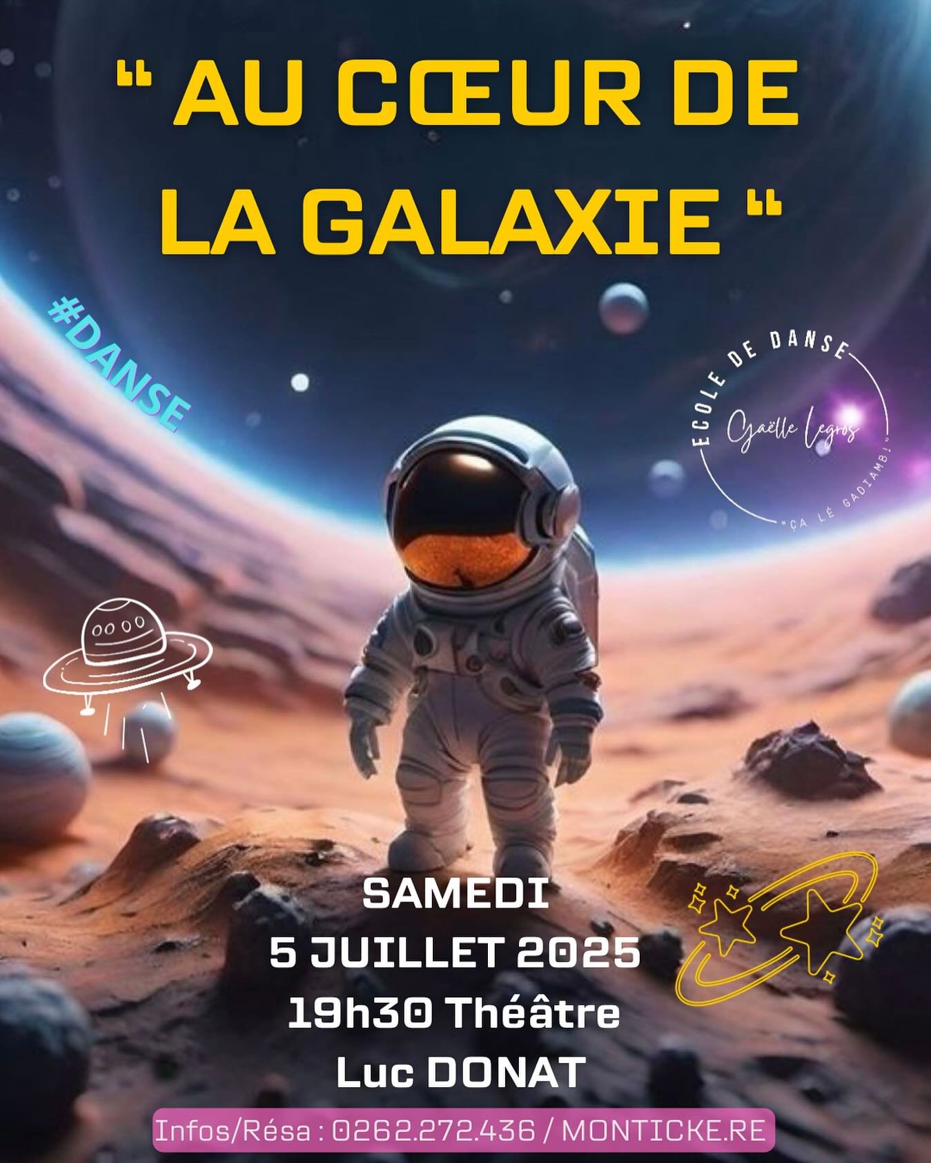 | Sud | AU COEUR DE LA GALAXIE | samedi 05/07 | 19h30 | Théâtre Luc Donat | 19,50 € | Enregistrer cette date |