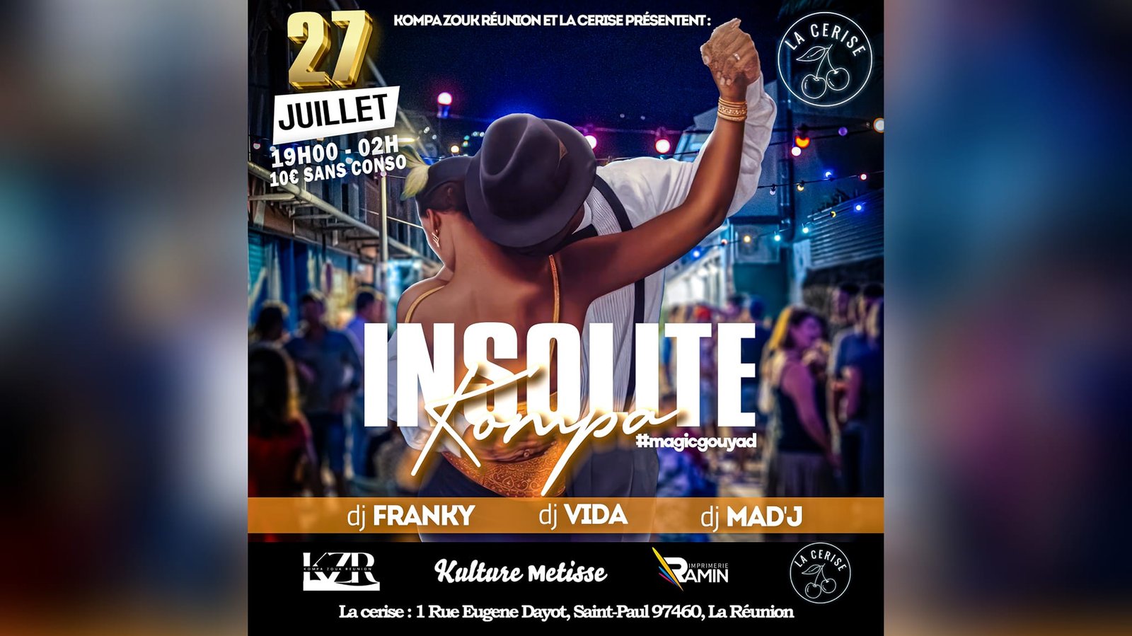 Car oui pour la première fois et pour votre plus grand plaisir, cette énorme soirée se déroulera dans une Rue de la ville de St Paul avec La Cerise Café culturel qui a eu les autorisations pour cet événement unique