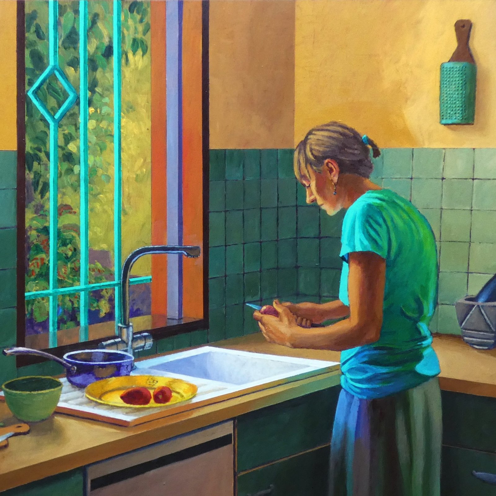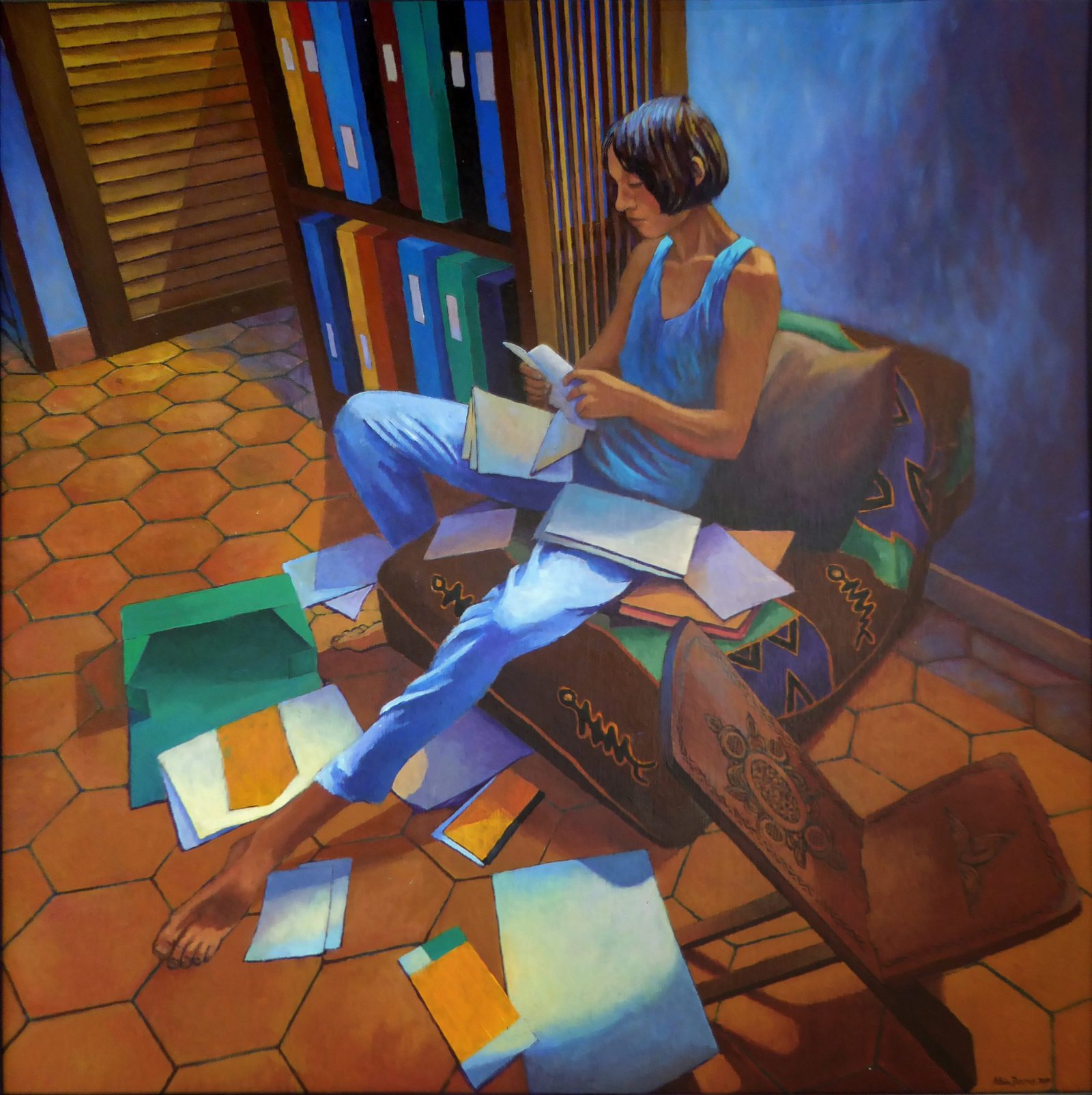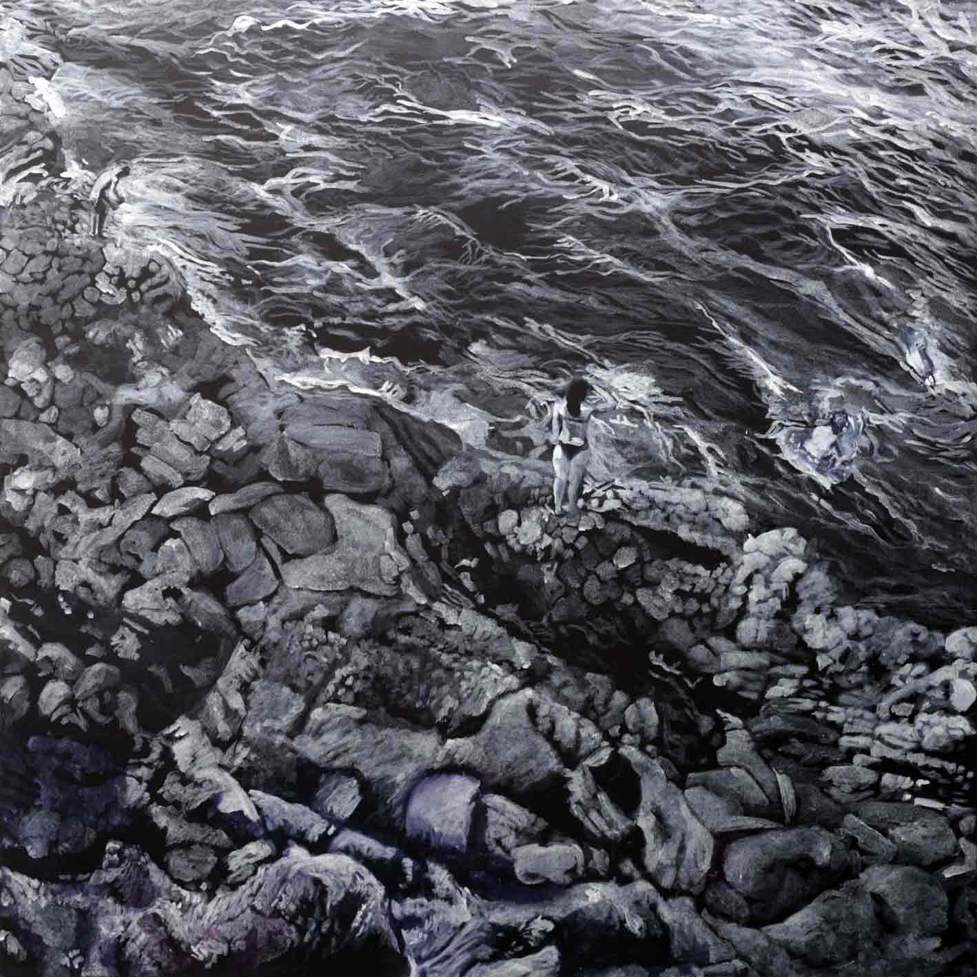 Deux démarches picturales qui interrogent, chacune à leur manière, la relation de l’homme à son milieu dans le contexte réunionnais. Il s’agit moins de représenter le territoire que d’en explorer les dimensions sensibles et symboliques : le sud insulaire, la mer, le paysage, mais aussi les espaces privés et publics, la tension entre l’intérieur et l’extérieur, passé et présent, et la place que prend la femme dans ces configurations spatiales et sociales. Deux passionnés de peinture que lient la technique, les formats, le goût de la couleur (ou son absence), la lumière et l’espace pour des images imprégnées de références picturales, expression d’états d’âme, de sentiments personnels, de dérives d’une nécessité intérieure plus que description du réel.