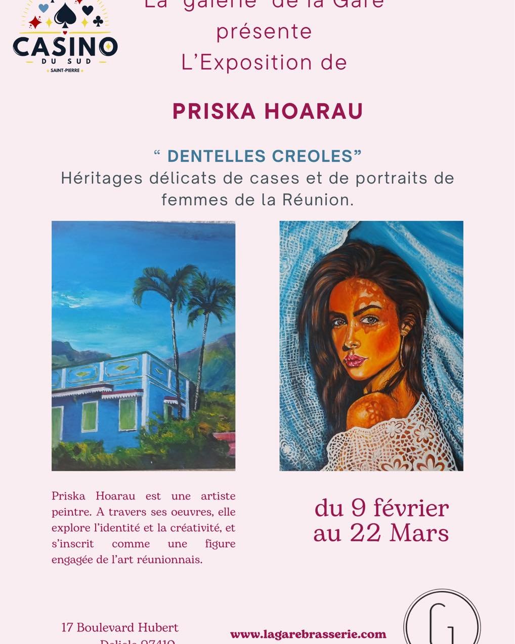 À travers ses œuvres, Priska Hoarau met en lumière les héritages délicats des cases créoles et les portraits de femmes de La Réunion.