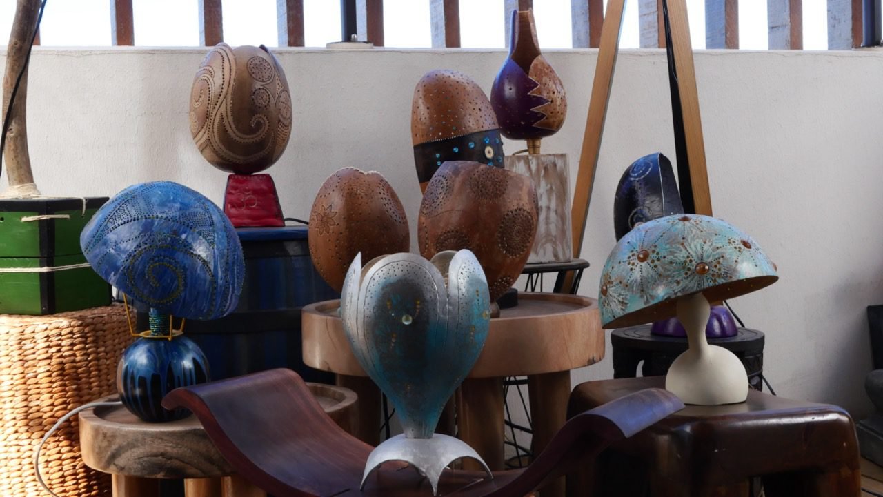 Pour son dernier mois avant fermeture définitive, fin juin 2024, le mythique Bistrô expose les non moins mystiques Calebasses de Manouchka² jusqu’au 24/06.