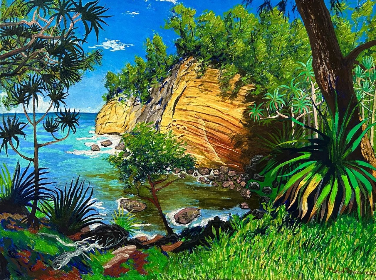 « Né à Saint-Denis de la Réunion le 5 mai 1972, Marcel Tipveau est un artiste peintre figuratif autodidacte qui s’inspire des paysages et des scènes de vie de son île. Influencé par les maîtres postimpressionnistes, sa peinture colorée se définie par des touches vives et spontanées déposées en empâtement sur la toile. »