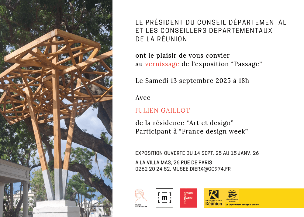 Cette restitution vient clore une résidence placée sous le signe du dialogue entre patrimoine créole et design contemporain. À travers une recherche sur les formes, matériaux et usages, j’ai souhaité créer un mobilier et une scénographie qui rendent hommage à l’histoire architecturale réunionnaise tout en l’inscrivant dans une démarche actuelle, durable et sensible au vivant. Entre bois et béton, entre Villa Mas et Musée Léon-Dierx, le projet explore les passerelles possibles entre mémoire et création, et propose aux visiteurs des espaces pensés comme des lieux de contemplation, de rencontre et de transmission.