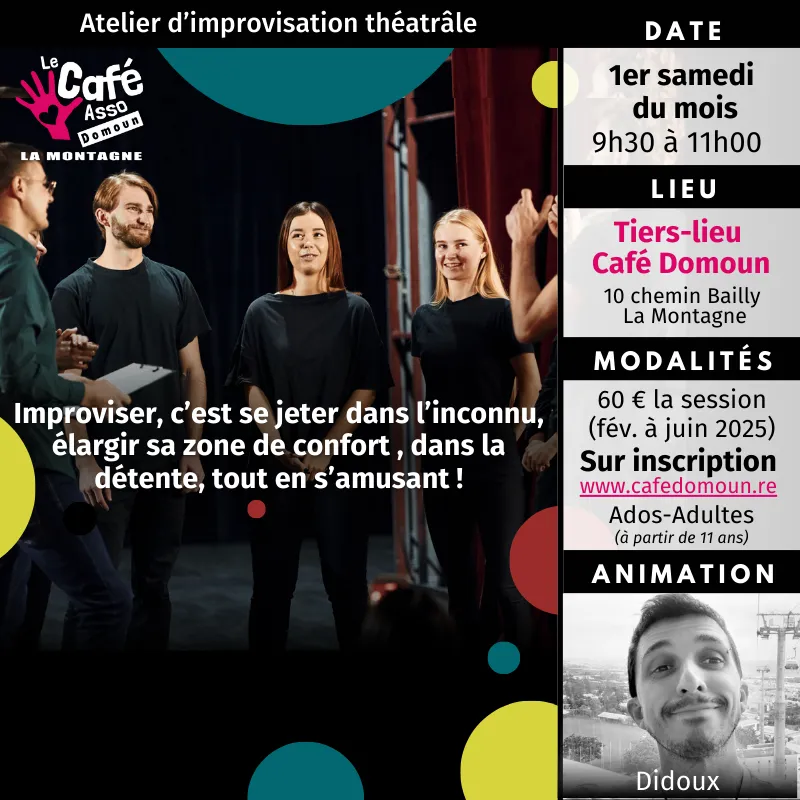 Improviser, c’est se jeter vers l’inconnu, élargir sa zone de confort , dans la détente, tout en s’amusant et prendre du plaisir à ce qu’on fait.