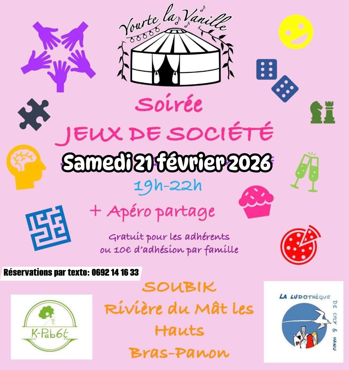 Nous revoilà avec notre fameuse et tant attendue SOIRÉE JEUX au SOUBIK Co animée par Cycy et Manu nos spécialistes des jeux de société en tout genre (plus de 500 jeux dans leur ludothèque).