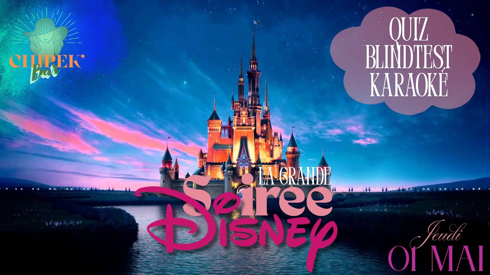 | Ouest | Soirée disney | samedi 30/08 | 18h00 | Chipek Bar | Gratuit | Enregistrer cette date |