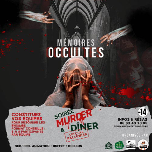 Quand les esprits s’invitent à la table, les secrets refont surface…murmures, messages, voyance… saurez-vous lever le voile sur ces faits oubliés et révéler les mystères de cette nuit hantée ? Embarquez vous dans l’expérience immersive « Mémoires Occultes », animée par des comédiens professionnels, où frissons et réflexion seront au rendez-vous.