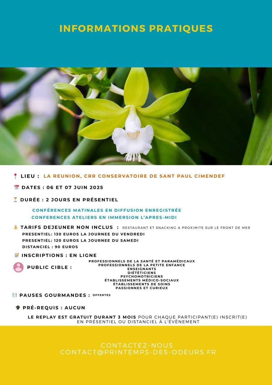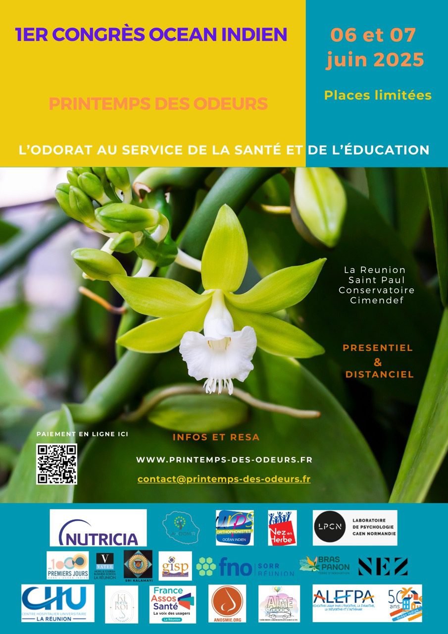 1erCongrès Printemps des odeurs de l’Océan Indien : L’odorat au service de la santé et de l’éducation, qui se tiendra les vendredi 6 et samedi 7 juin 2025.