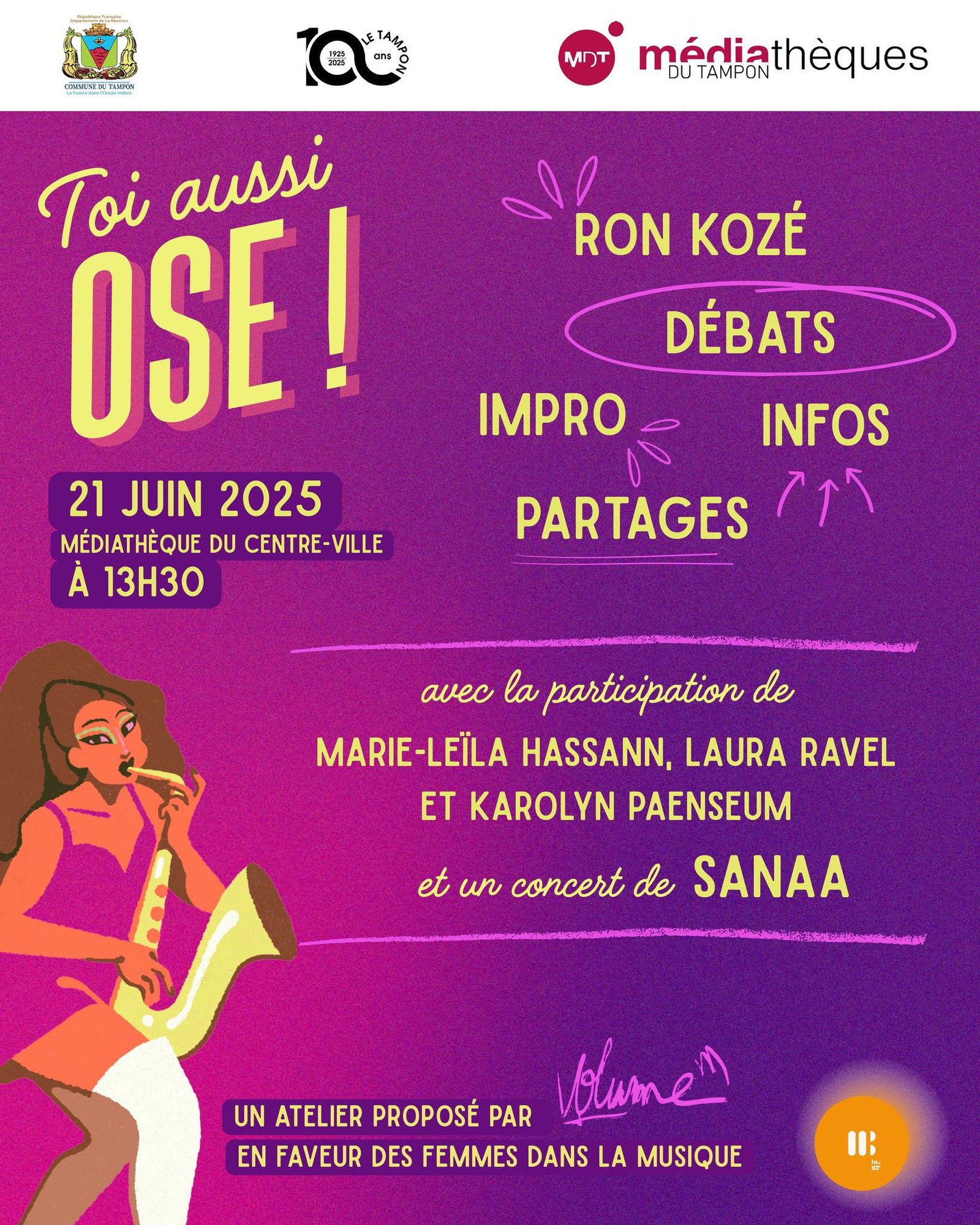 « Toi aussi, ose ! » est un atelier inspirant, proposé par VOLUME, projet de l’association la 113ème, et dédié aux filles et jeunes femmes qui souhaitent travailler dans l’industrie de la musique.
