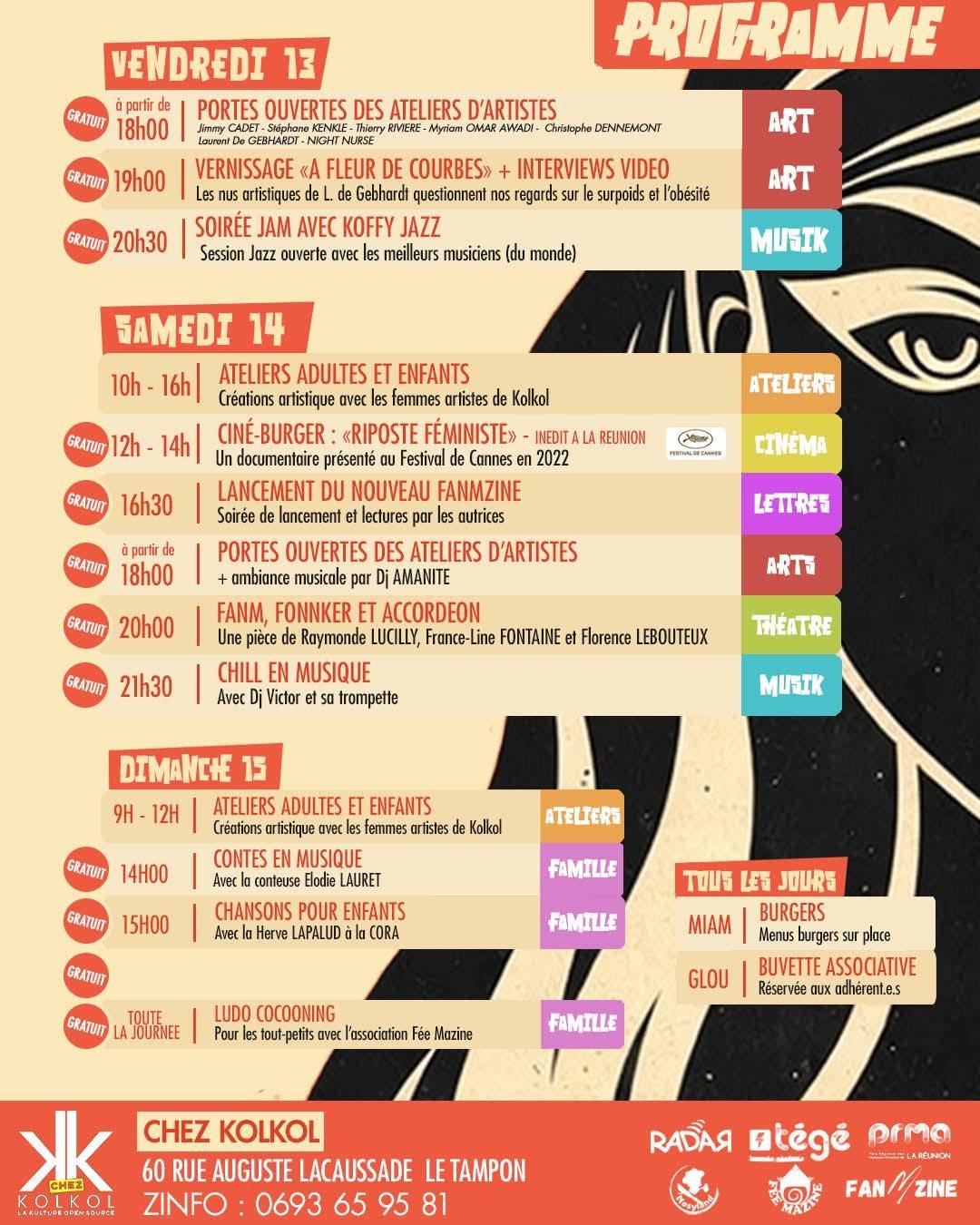 Ariv azot, nora zèkspozisyon, la litératir, téat, fonnkèr, la mizik, zatlyé kréatif, in zourné pou bann marmay, ansanmsa bann vizit zatlyé bann zartis… Pou tout domoun, kiswa ti baba ziska gramoun, lo kèr gran rouvèr