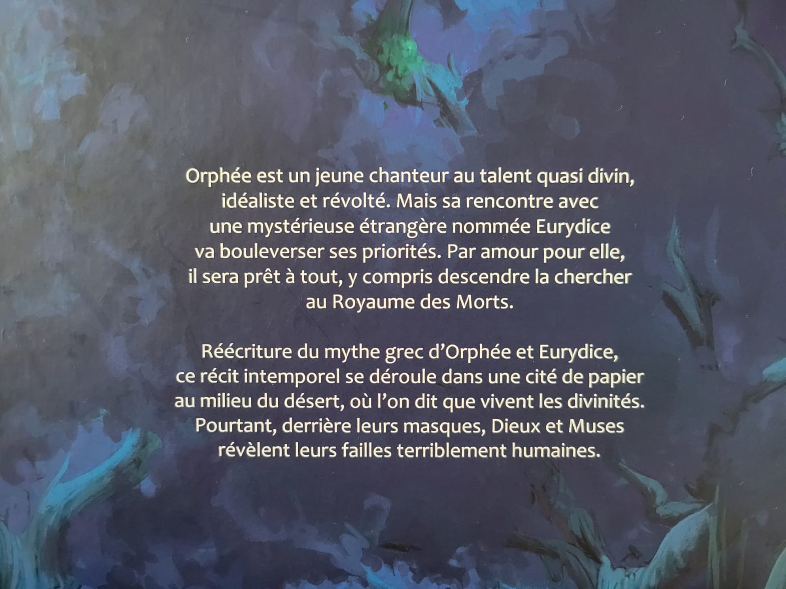J’ai commencé à imaginer cette histoire en Terminale, quand j’avais 17 ans ! À cette époque j’aimais beaucoup le mythe d’Orphée et Eurydice parce que l’héroïne mourait à la fin. C’était un peu torturé et comme j’étais une adolescente mélancolique, ça faisait écho à mes propres questionnements.