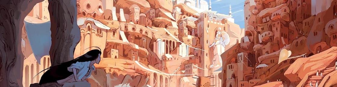 Certes, je suis aussi dessinatrice, mais j’ai un style qui est assez minimaliste qui se prête mieux à la vulgarisation et au récit du quotidien, notamment parce que j’ai pas beaucoup d’imagination visuelle ! J’ai besoin de m’appuyer sur des références pour réaliser les décors, et je travaille beaucoup avec des photos avec Google Street View pour me documenter. En fait je suis absolument incapable de dessiner un univers imaginaire et encore moins d’y arriver avec ce niveau de détails et de qualité ! Je voulais des architectures fantastiques, de la lumière, des jeux sur la couleur, des ambiances, et cetera… C’est pour ça que je suis partie à la recherche d’une dessinatrice qui soit capable d’atteindre ce niveau de raffinement et de créativité. Et donc je suis très heureuse d’avoir pu confier cette histoire à Solen !