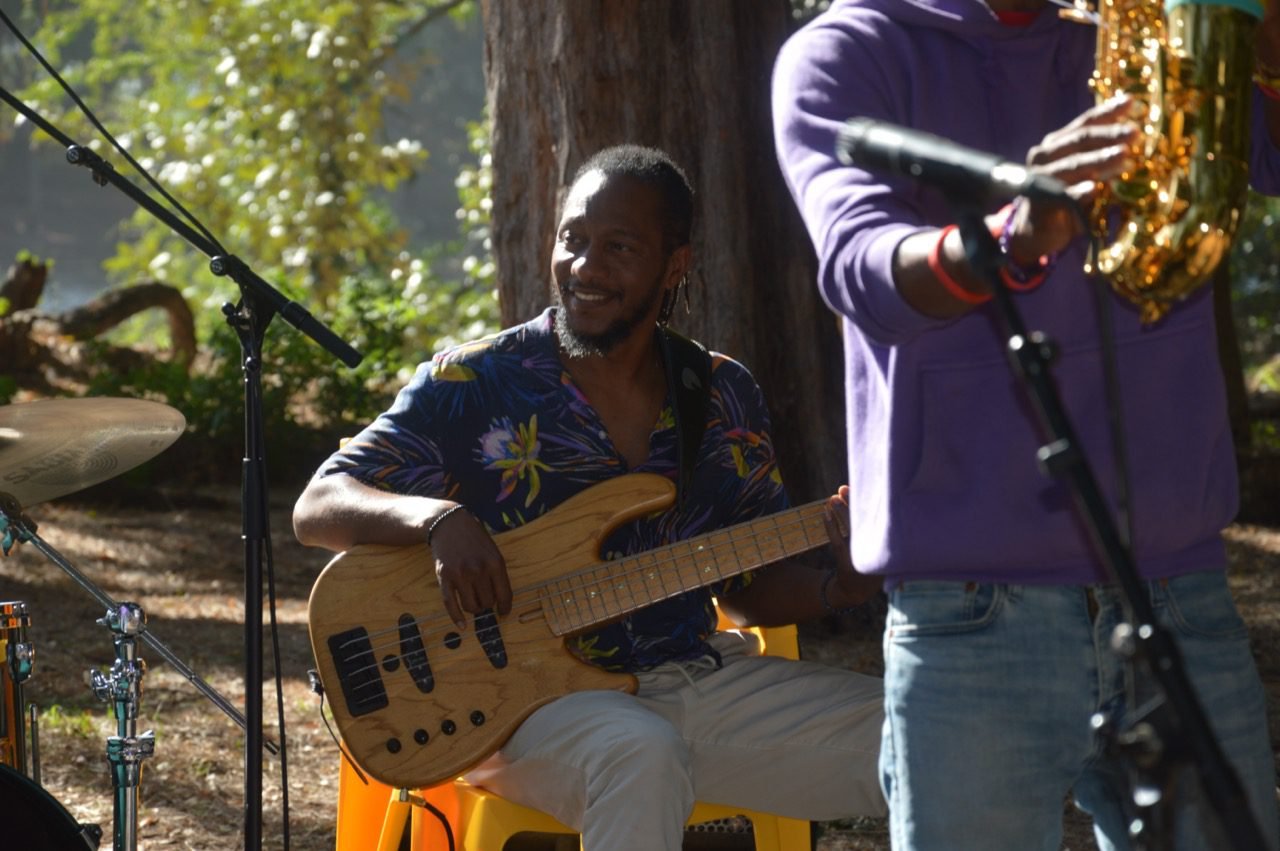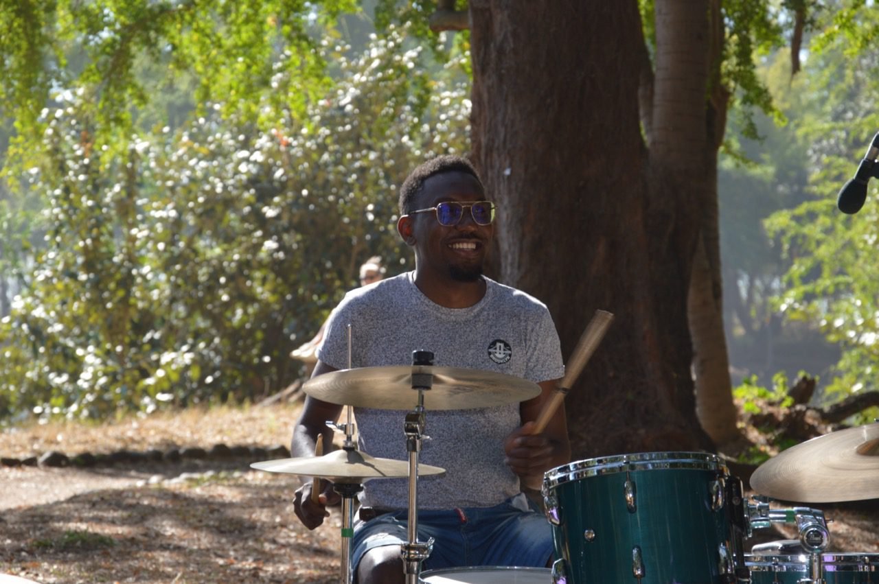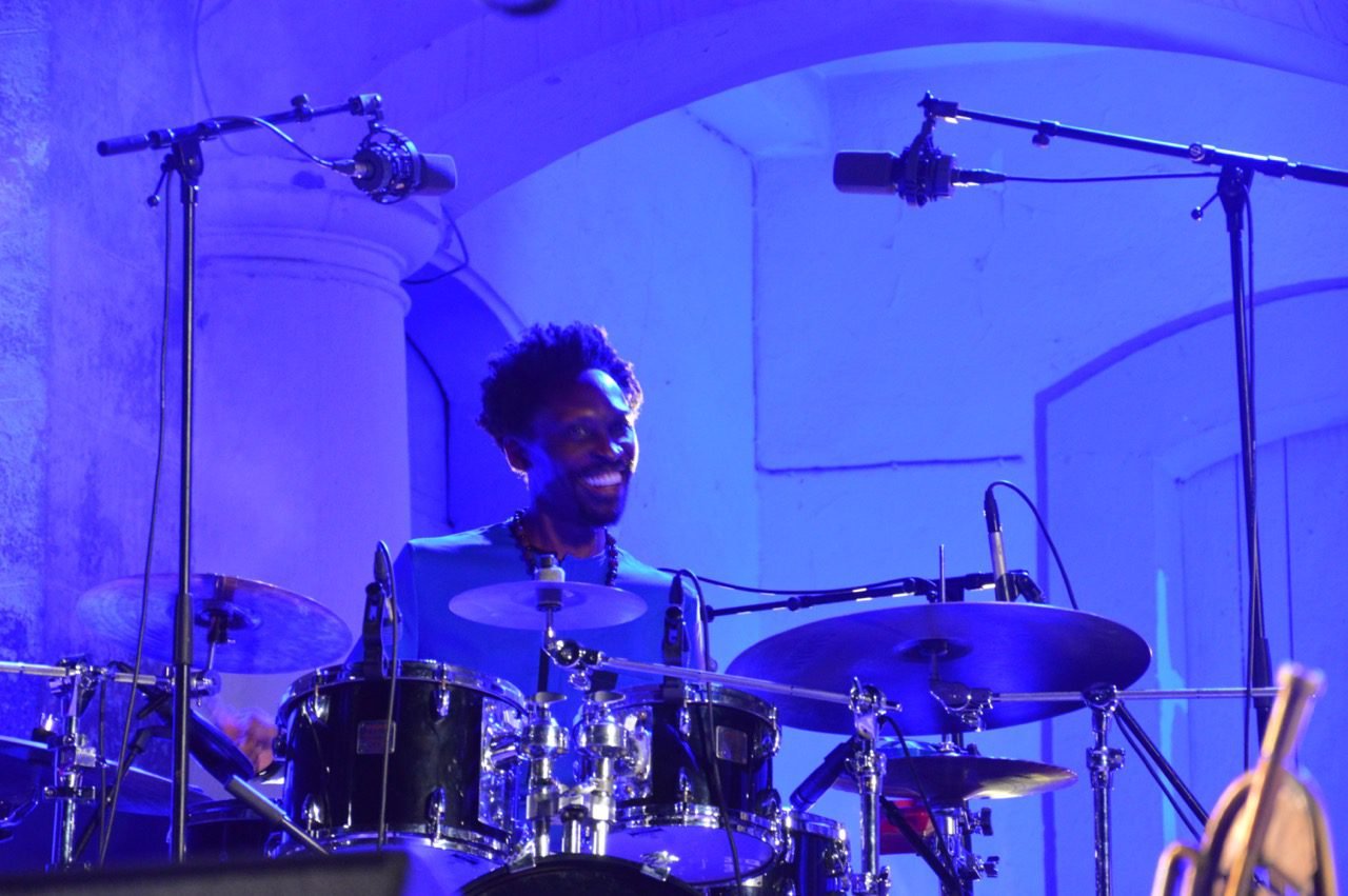 Le temps de se remettre de ce premier élan, nous voilà le lendemain dans ce même lieu, pour découvrir le Big In Jazz Collective. Autre couleur, autre énergie. Très vite, dans le public, les regards se croisent et se disent quelque chose comme « on est d’accord, il se passe un truc là, et on est bien content d’en être ». Ensemble : c’est le mot. Ces gars-là se connaissent bien, et ça se sent. Ils s’aiment et c’est contagieux. Quelle joie ! pas le temps de s’en rendre compte que le sourire des musiciens se scotche à tous les visages, imparable. Impossible de ne pas bouger quelque chose, un pied, la tête, le corps. C’est un mélange subtil et beau d’énergie détonante, de force tranquille et libre de groove, de douceur, de profondeur. Les ancêtres convoqués se sont peut-être joints à nous, et avec nous ils ont sûrement dansé !