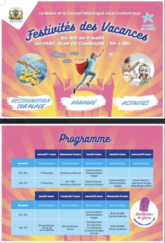- Mercredi 5 mars : Spectacle de magie et maquillage pour enfants, avec une distribution gratuite de glaces à 16h !
