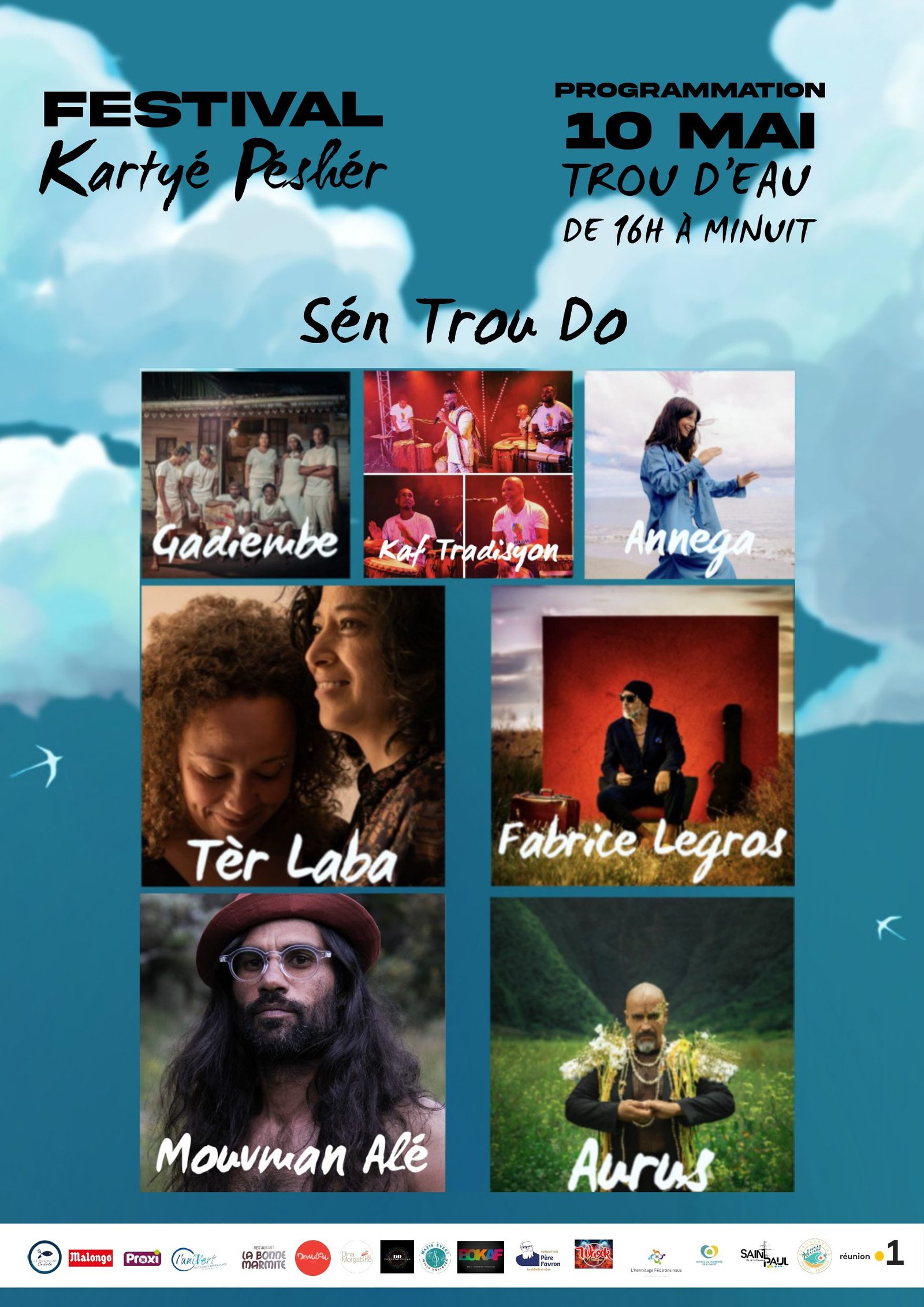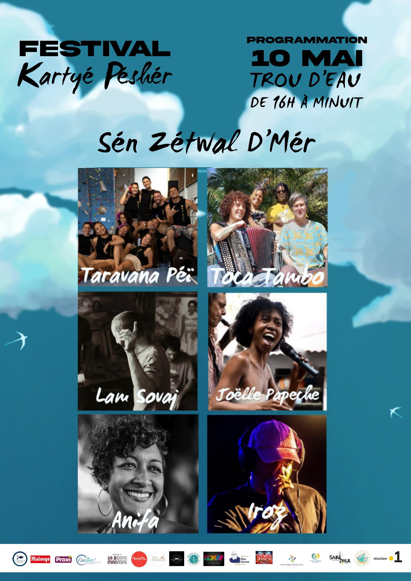 | Ouest | Festival kartyé péshér | samedi 10/05 | 09h00 | Plage de trou d’eau | Gratuit | Enregistrer cette date |