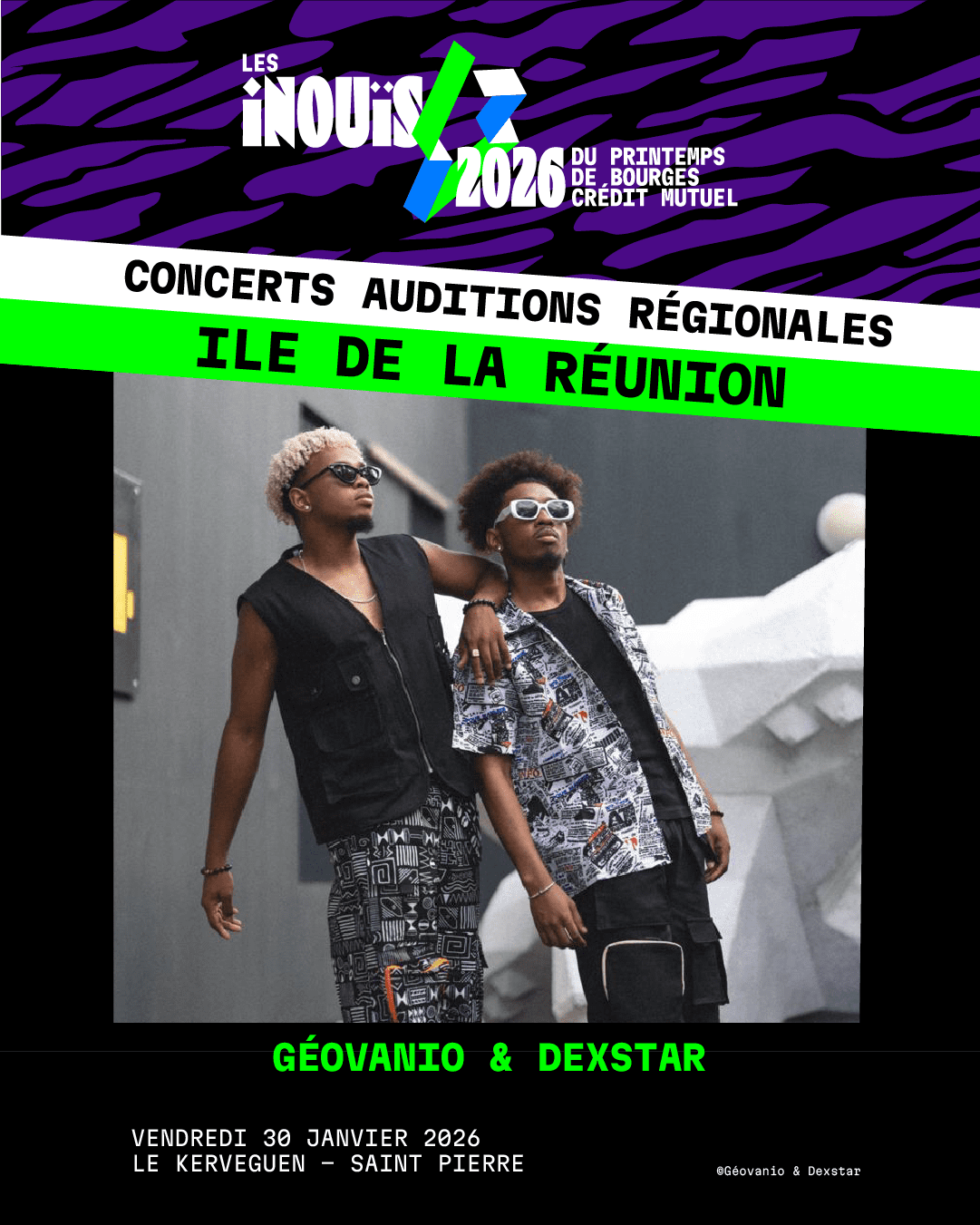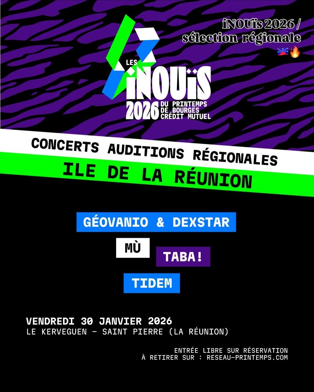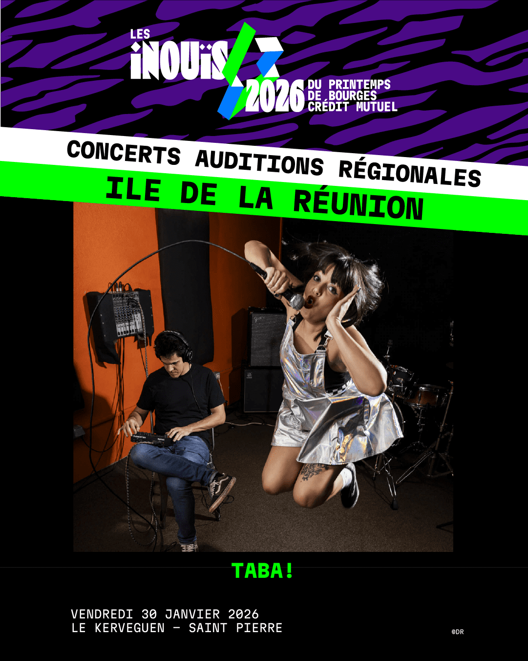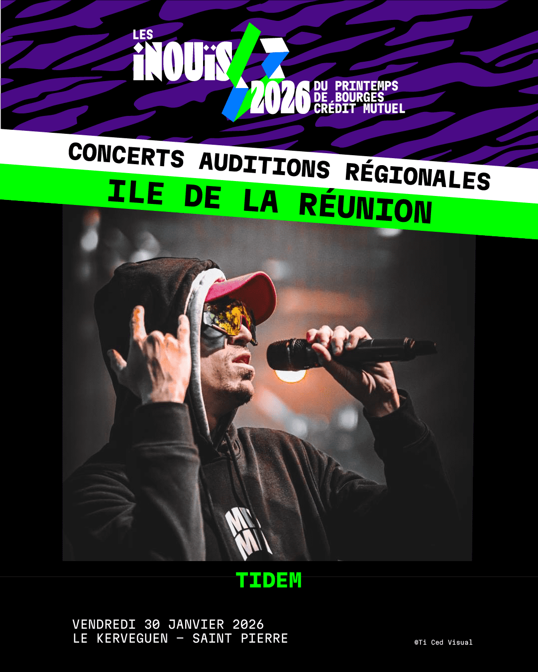 Venez découvrir et encourager les 4 artistes présélectionné·es pour Les iNOUïS du Printemps de Bourges Crédit Mutuel 2026 lors de l’audition régionale de l’antenne Ile de la Réunion :