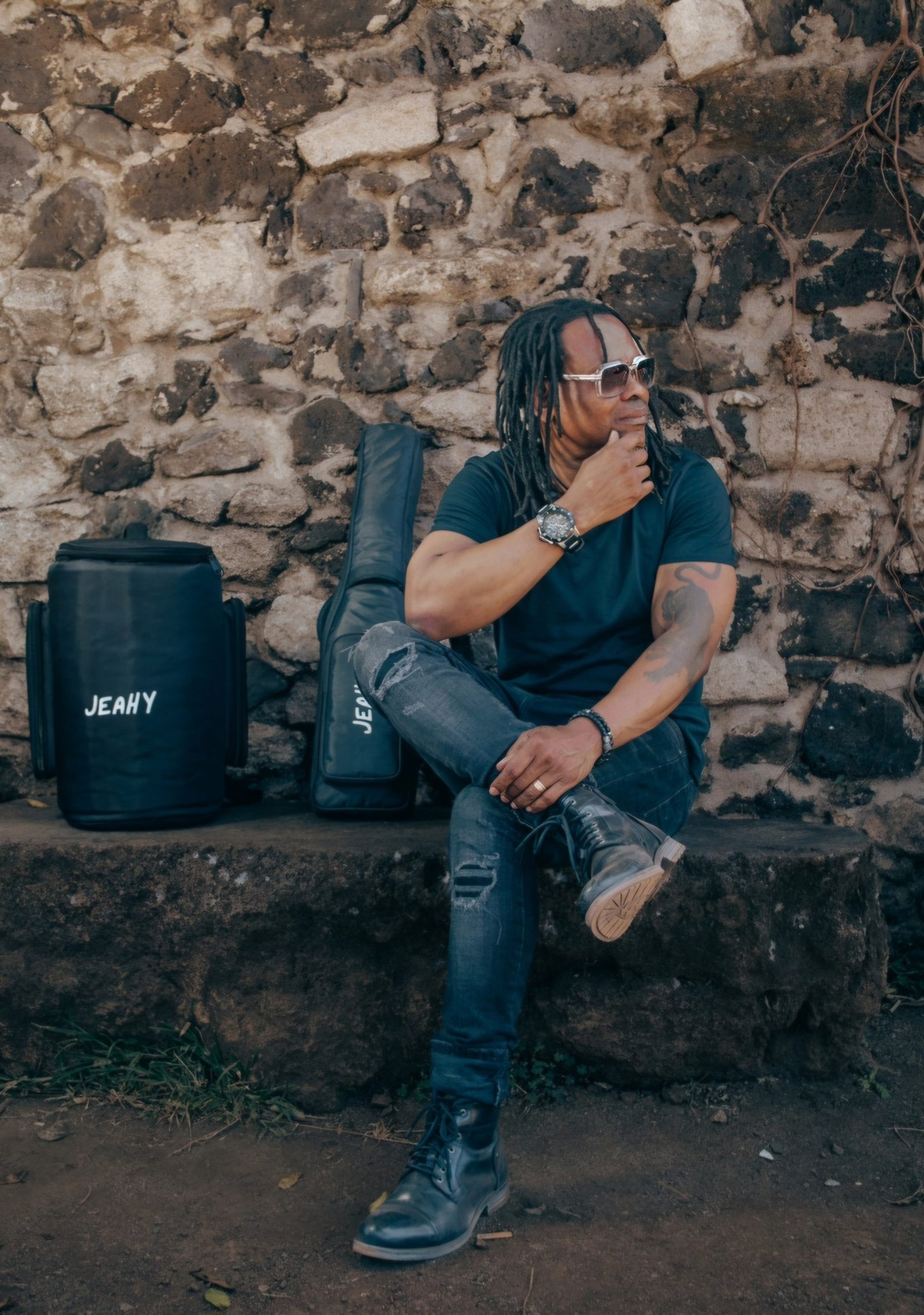 Son nom d’artiste JEAHY, signifie « l’homme » en malagasy mahafaly. Ses vrais prénoms sont Laurent Manjakasoa ( ce qui signifie en malagasy, « bon roi » – quoi de plus normal puisqu’il est issu de princes et princesses mahafaly). Son destin ? Toute une aventure extraordinaire.