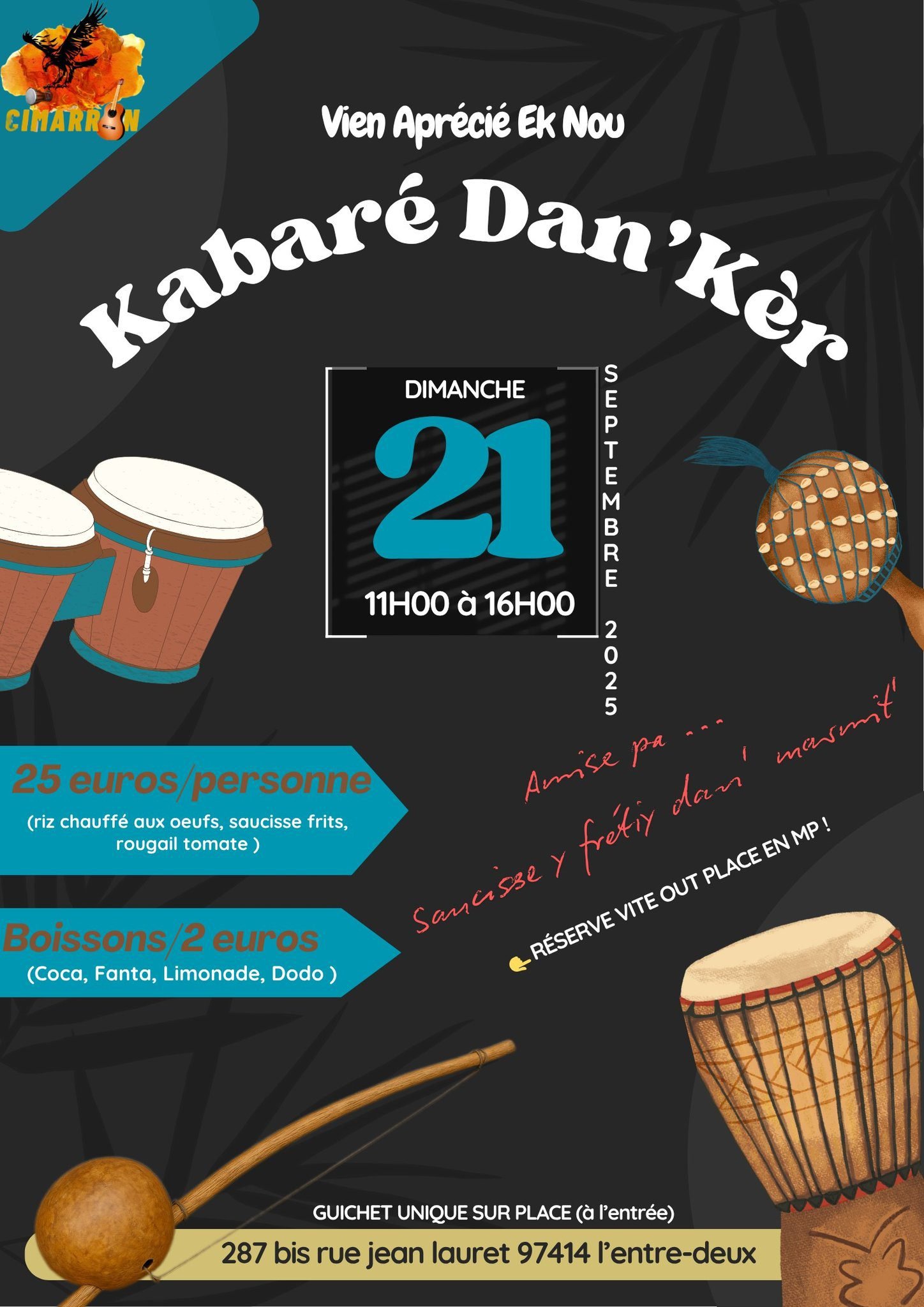 | Sud | Kabaré Dan’Kèr | dimanche 21/09 | 11h00 | L’entre deux | 25 € | Enregistrer cette date |