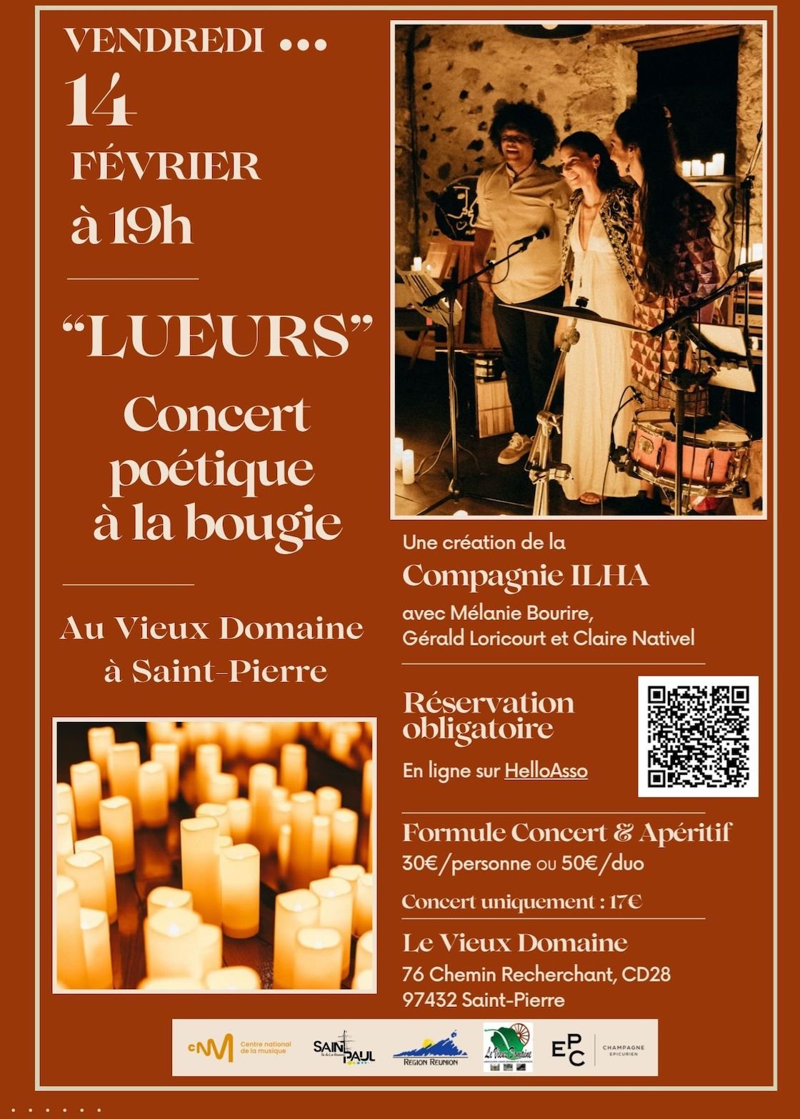 Disponible en concert seul ou en formule spéciale Saint-Valentin: Concert + Apéro-champagne.