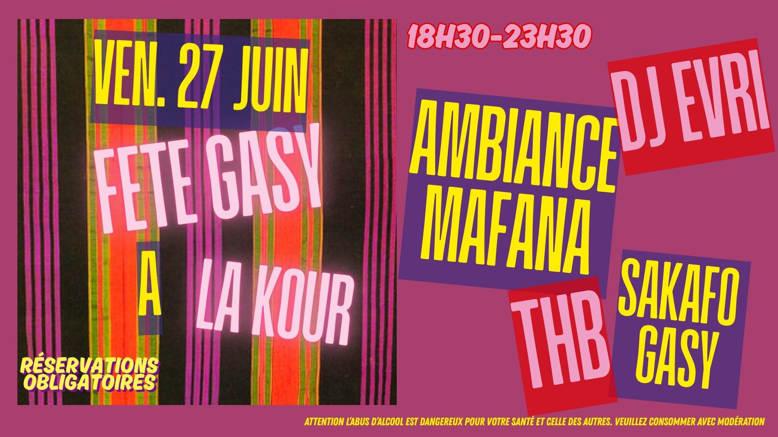 Au programme :Ambiance MAFANA avec DJ EVRISakafo Gasy de M’Tsaky TraiteurTHB, Bonbon anglais et bonne humeur !