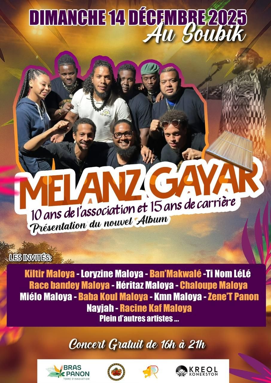 Mélanz Gayar vous propose ici un Groove de Maloya traditionel typiquement de l’île de la Réunion , composé de 6 musiciens qui debordent d’énergie issues des familles kabary.