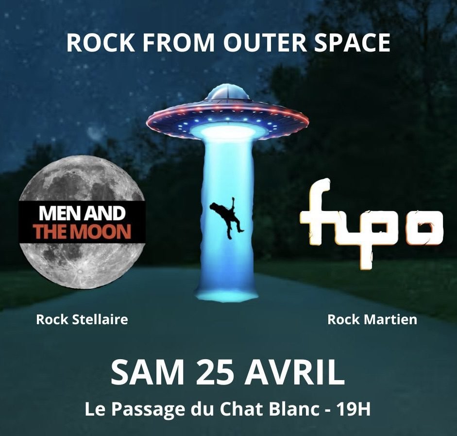 Men an the Moon et FIPO posent leurs soucoupes au chat blanc pour une soirée rock extra terrestre.