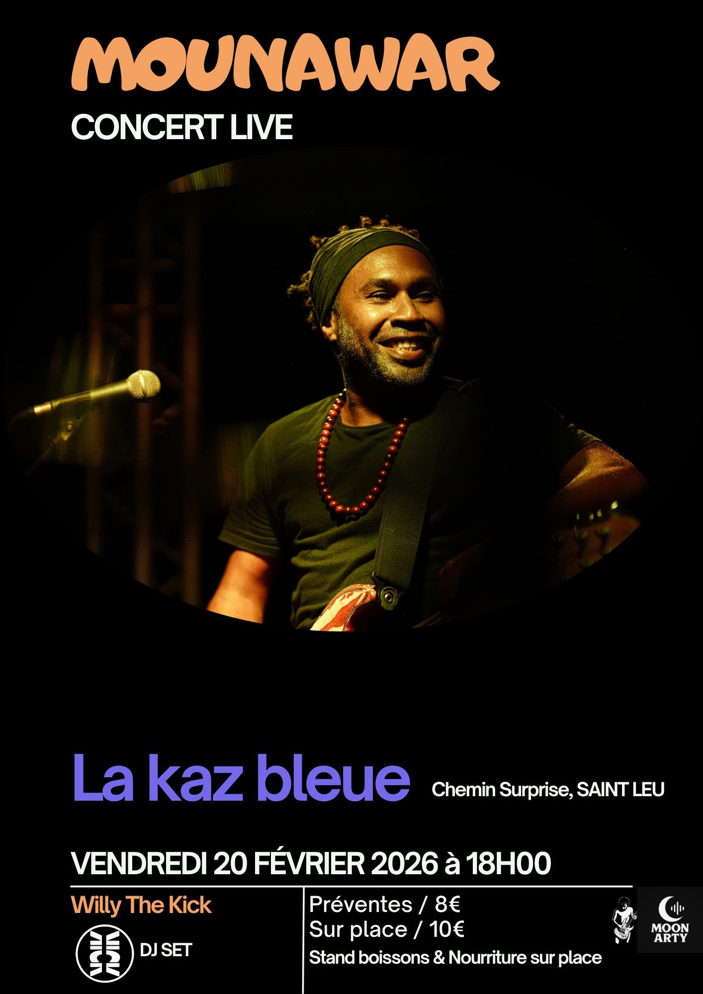 Son lieu d’expression favori, ça reste avant tout la scène : Showman dans l’âme, un concert de Mounawar est toujours synonyme de générosité et de partage