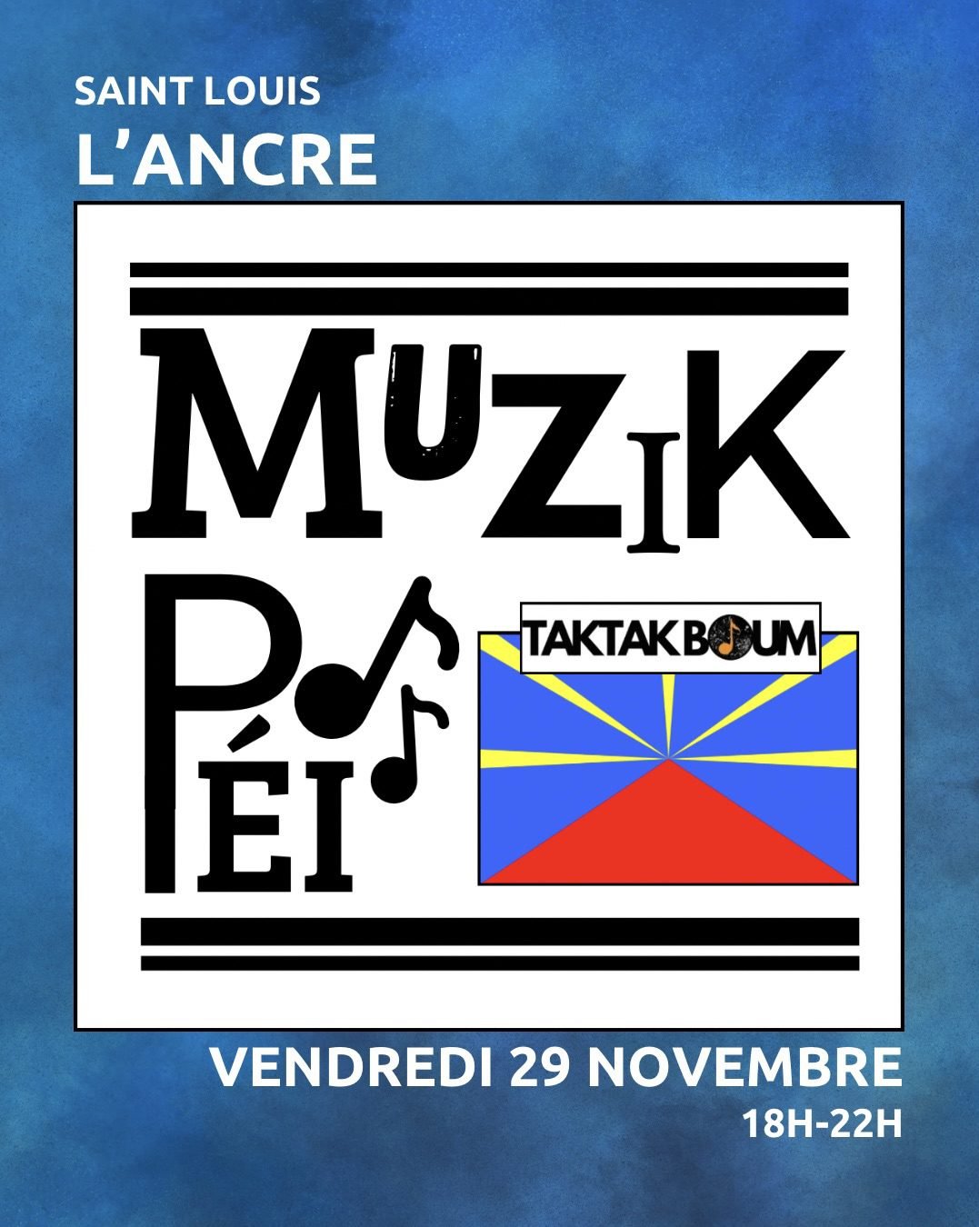 | Sud | Muzik pei | vendredi 29/11 | 18h00 | L’ancre Food Fish | Gratuit | Enregistrer cette date |