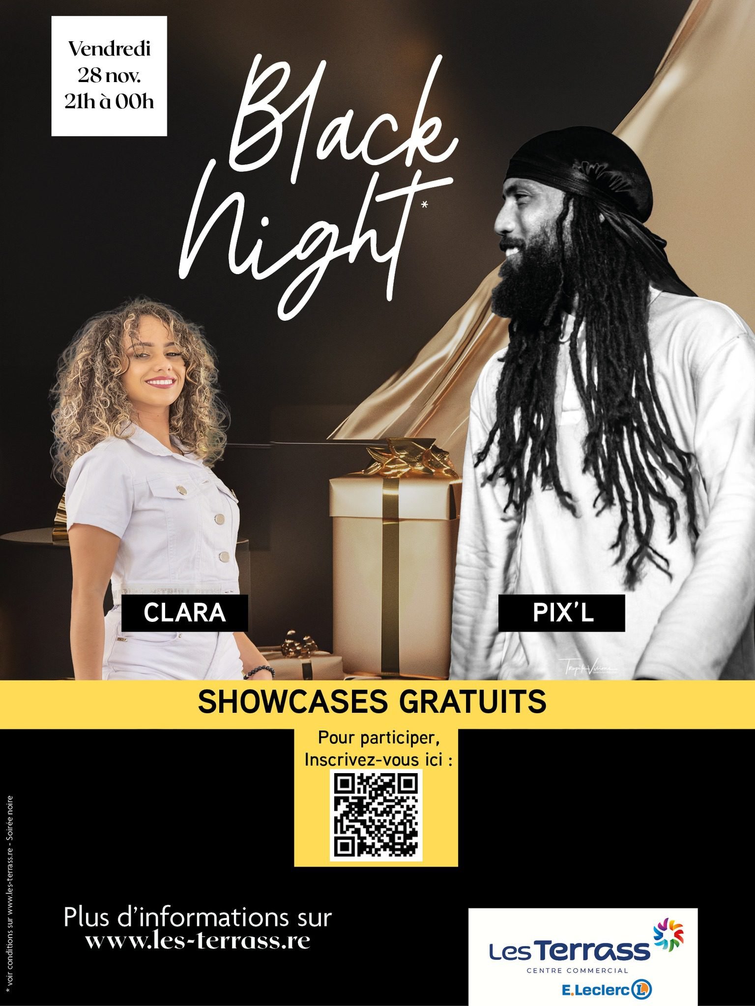 La black Night le vendredi 28 novembre 2025 de 21h à minuit ! Inscrivez-vous pour passer un bon moment avec Clara & Pix’L !