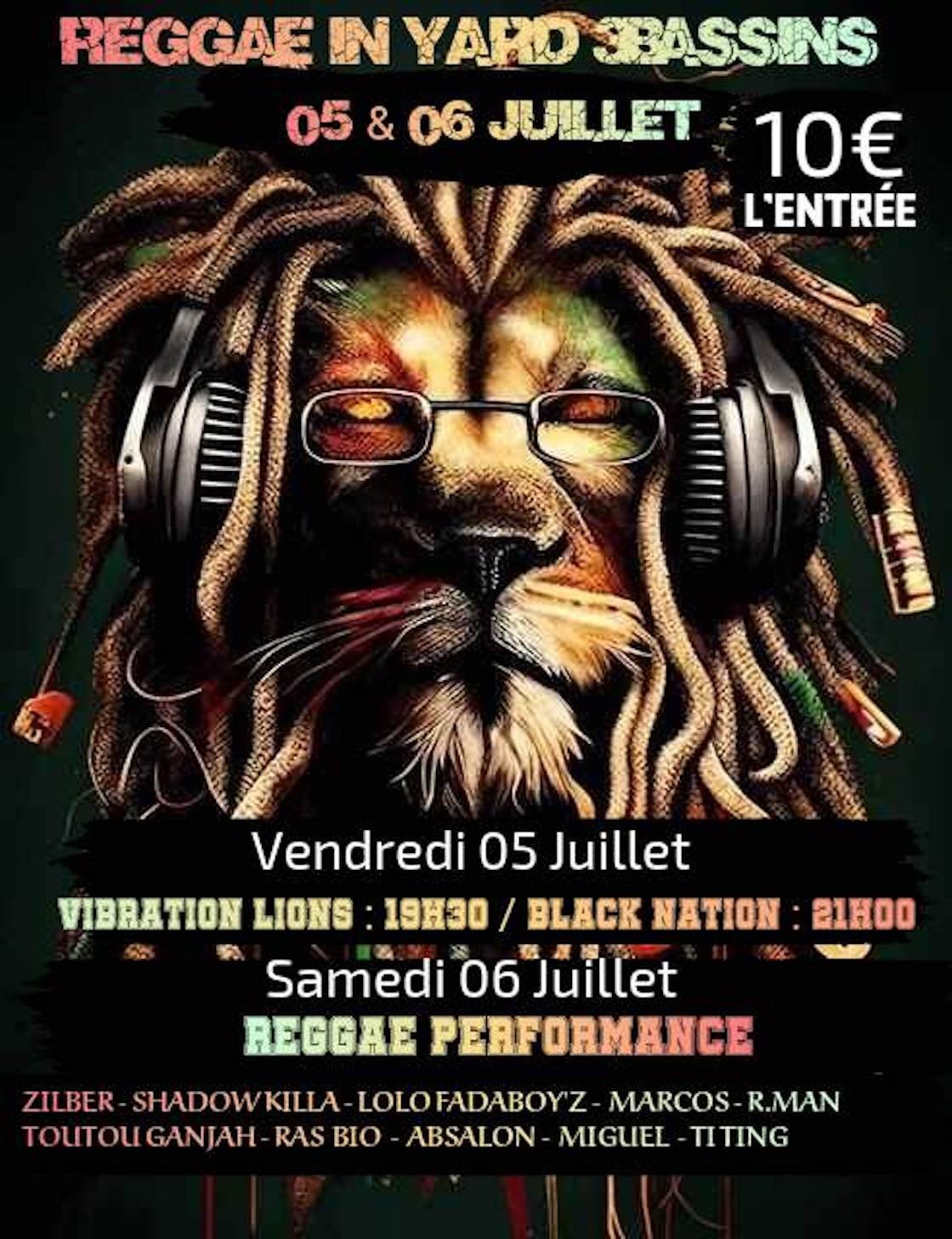 pour le vendredi : VIBRATION LIONS/BLACK NATIONpour le samedi: REGGAE PERFORMANCE avec plein d’artisteavec le groupe VIBRATION LIONS