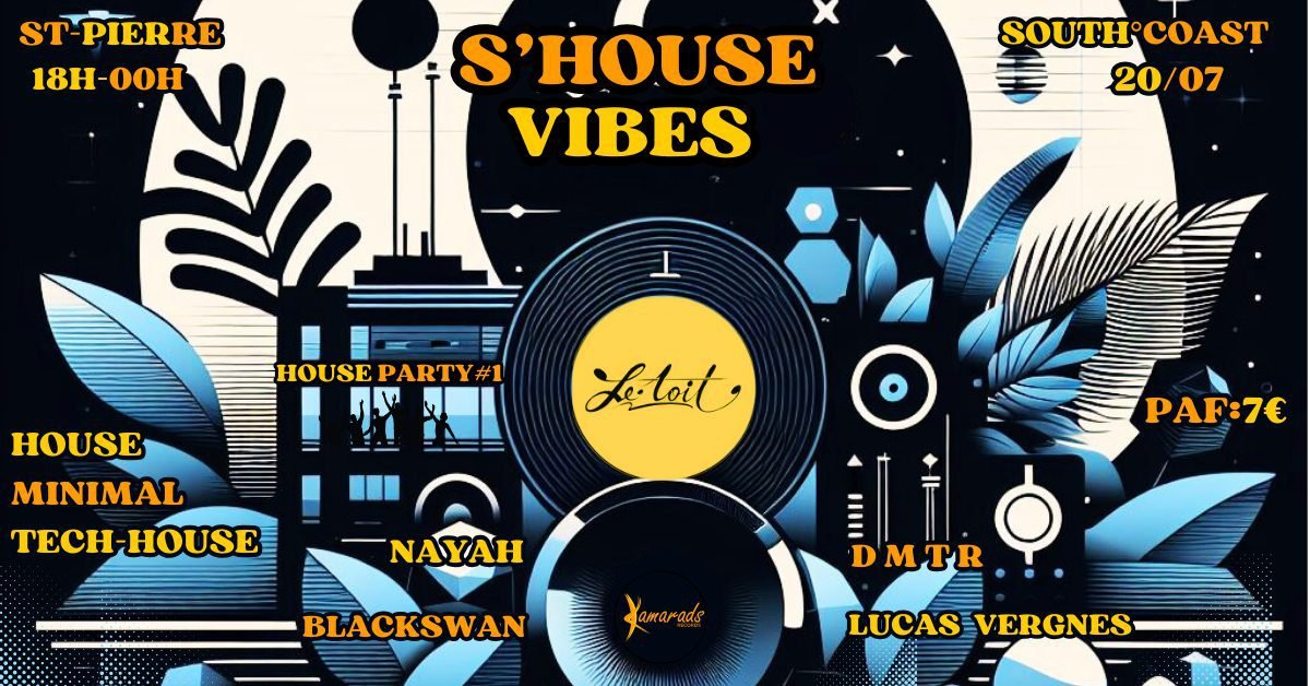 Nayah et Black Swan invitent pour cette première édition de la S’HOUSE VIBES deux grands artistes bien connus de la scène locale : Lucas Vergnes et DMTR qui vous feront vibrer toute la soirée avec des sets variés et captivants, parfaits pour danser une sphère musicale unique