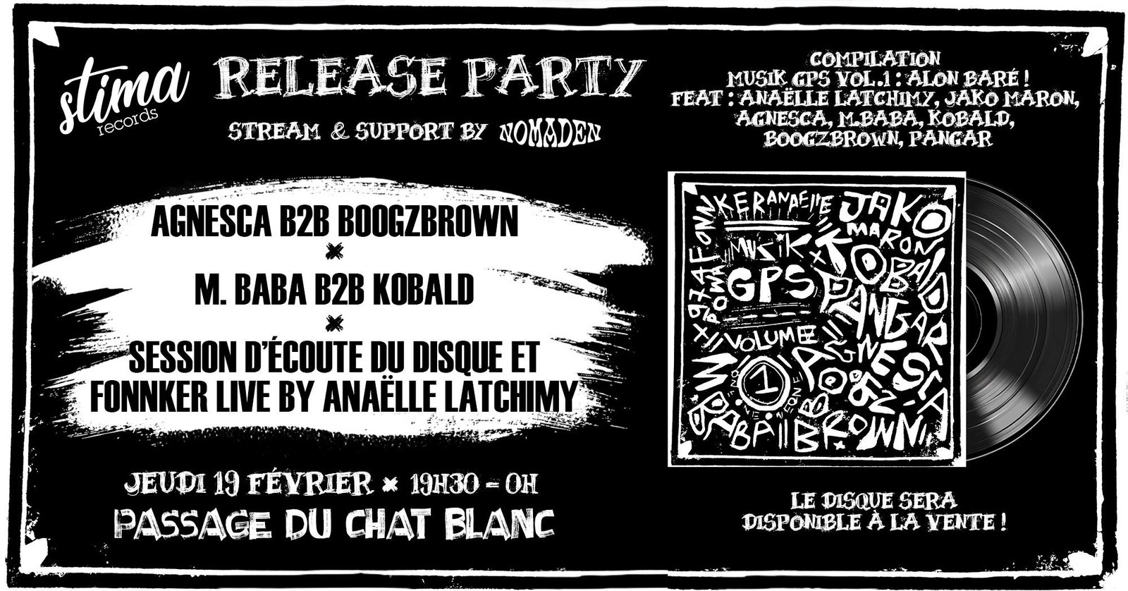 Stima Records (label indépendant entre Paris, Grenoble et La Réunion, dédié aux musiques rares et au soutien de la scène locale) débarque au Passage du Chat Blanc pour célébrer la sortie de Musik GPS : une compilation pensée comme une carte sonore de La Réunion.