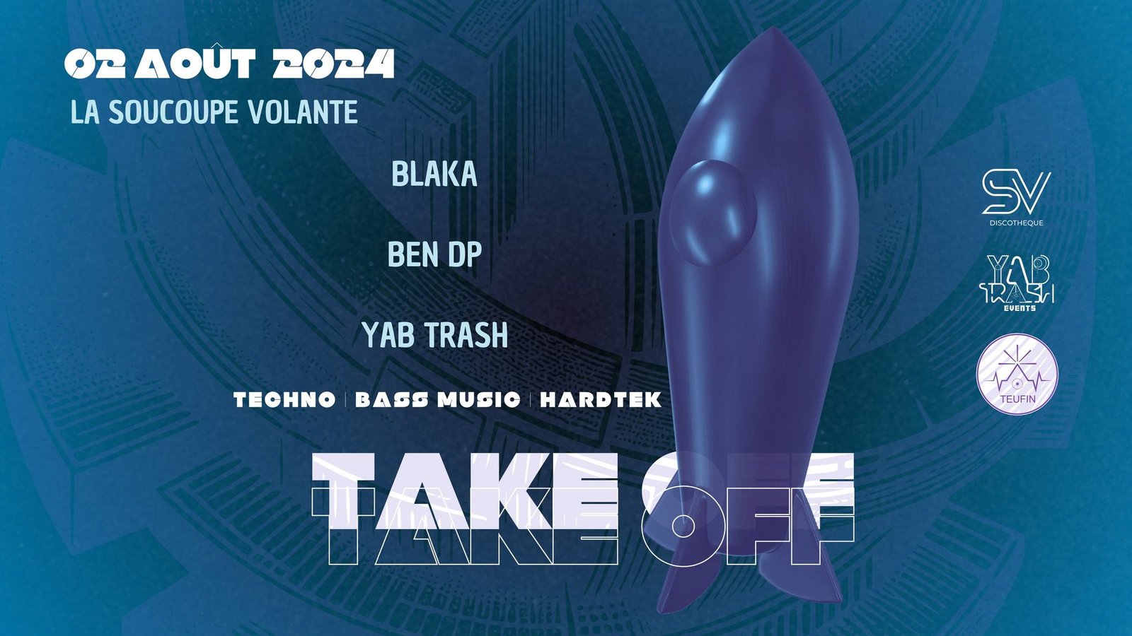 Pour cette deuxième édition de Take Off, nous conservons les bases et le concept qui ont fait le succès de la première : une grande installation sonore quadriphonique, accompagnée d’une petite façade pour une expérience sonore encore plus immersive.