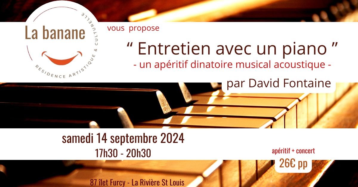 David Fontaine dialogue quotidiennement avec son piano et vous propose d’entendre leur conversation privée lors d’un concert apéro intimiste dans le petit salon cosy de la résidence La Banane.
