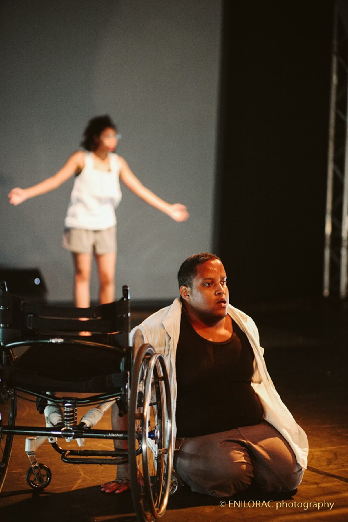 En première partie, duo improvisée de danse inclusive, accompagné de la violoncelliste Stephanie Aho.