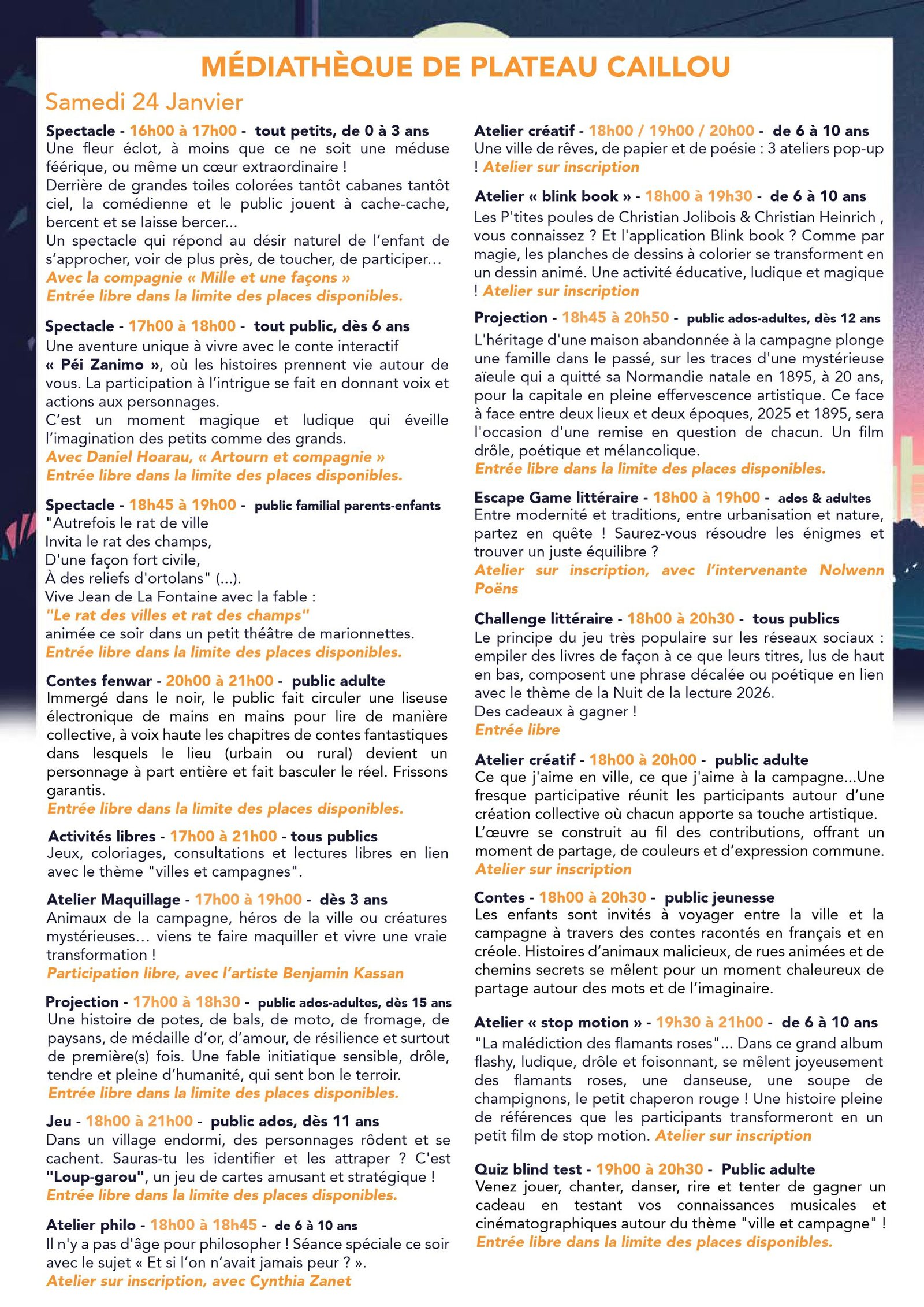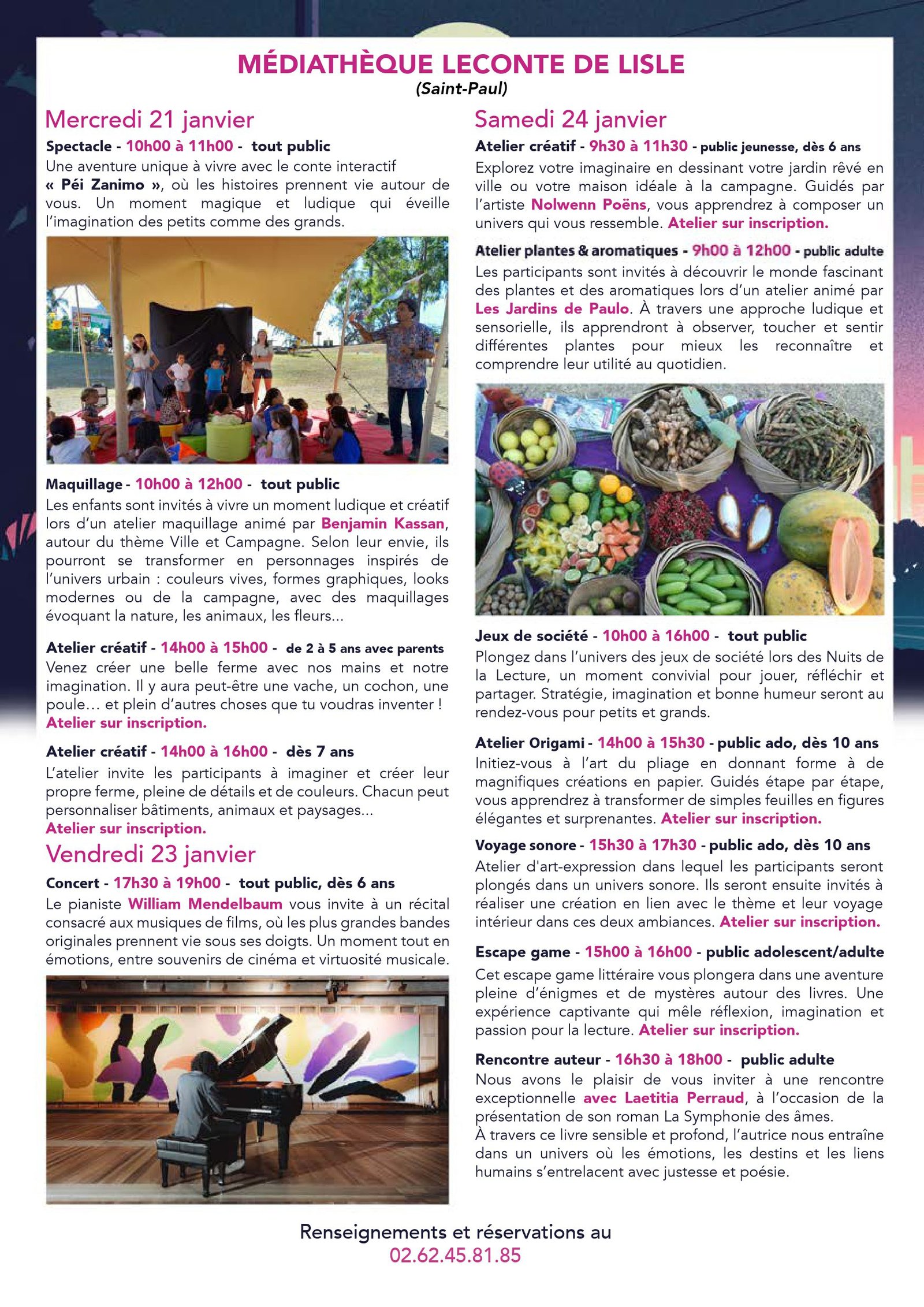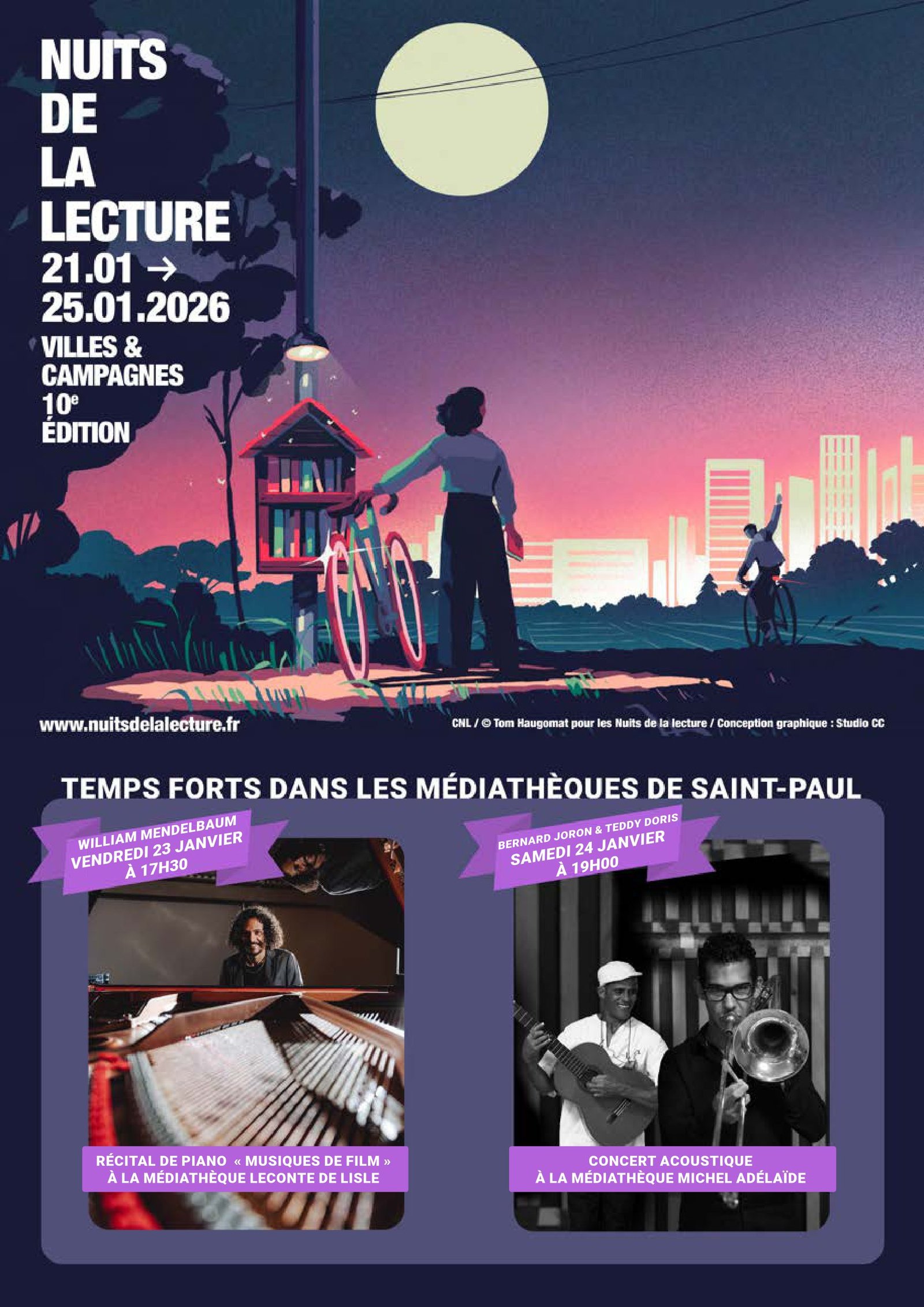 Retrouvez ici le programme des Nuits de la lecture 2026 qui se dérouleront sur toute l’île du 21 au 25 janvier.