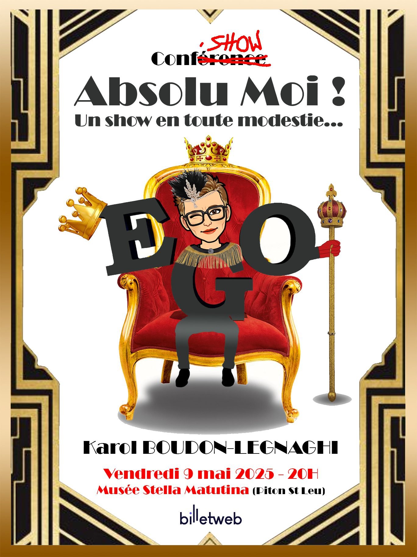 Karol Boudon-Legnaghi vous embarque dans une conférence théâtralisée humoristique pour rééduquer « Môssieur l’ego » et reprendre les commandes de nos vies.