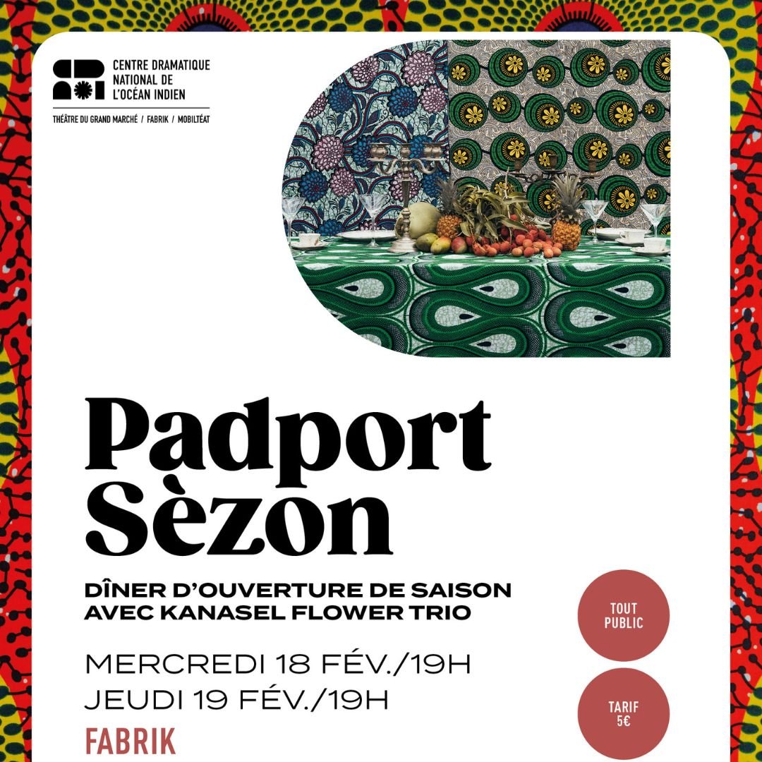 Pour donner le coup d’envoi de la saison théâtrale, l’équipe du CDNOI vous convie à son PadportSèzon. Quoi de plus convivial qu’une grande tablée et un repas partagé en compagnie des artistes compagnon.ne.s, des compagnies associées et invitées, et de la Brigade Mobile d’Intervention Artistique pour partir à la découverte du menu de votre saison au Centre Dramatique National de l’océan Indien ?